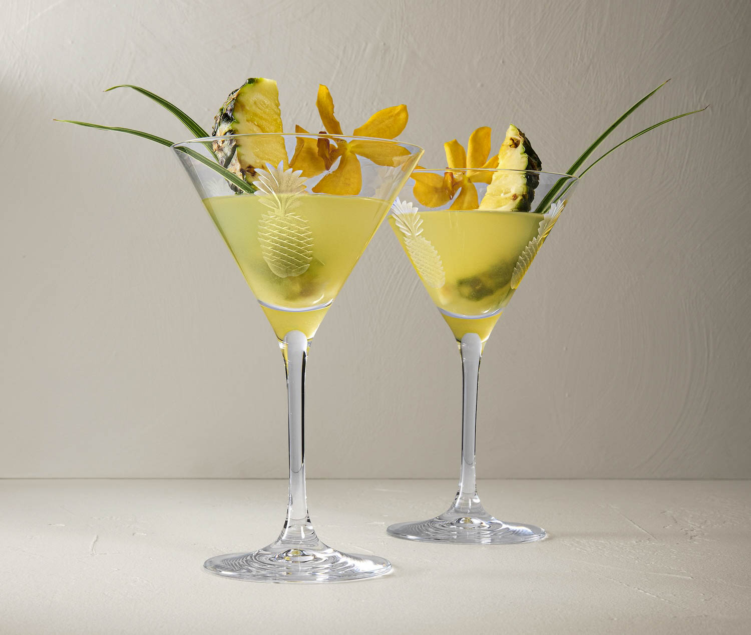 Pineapple Debossed Martini Glasses, Set of 2