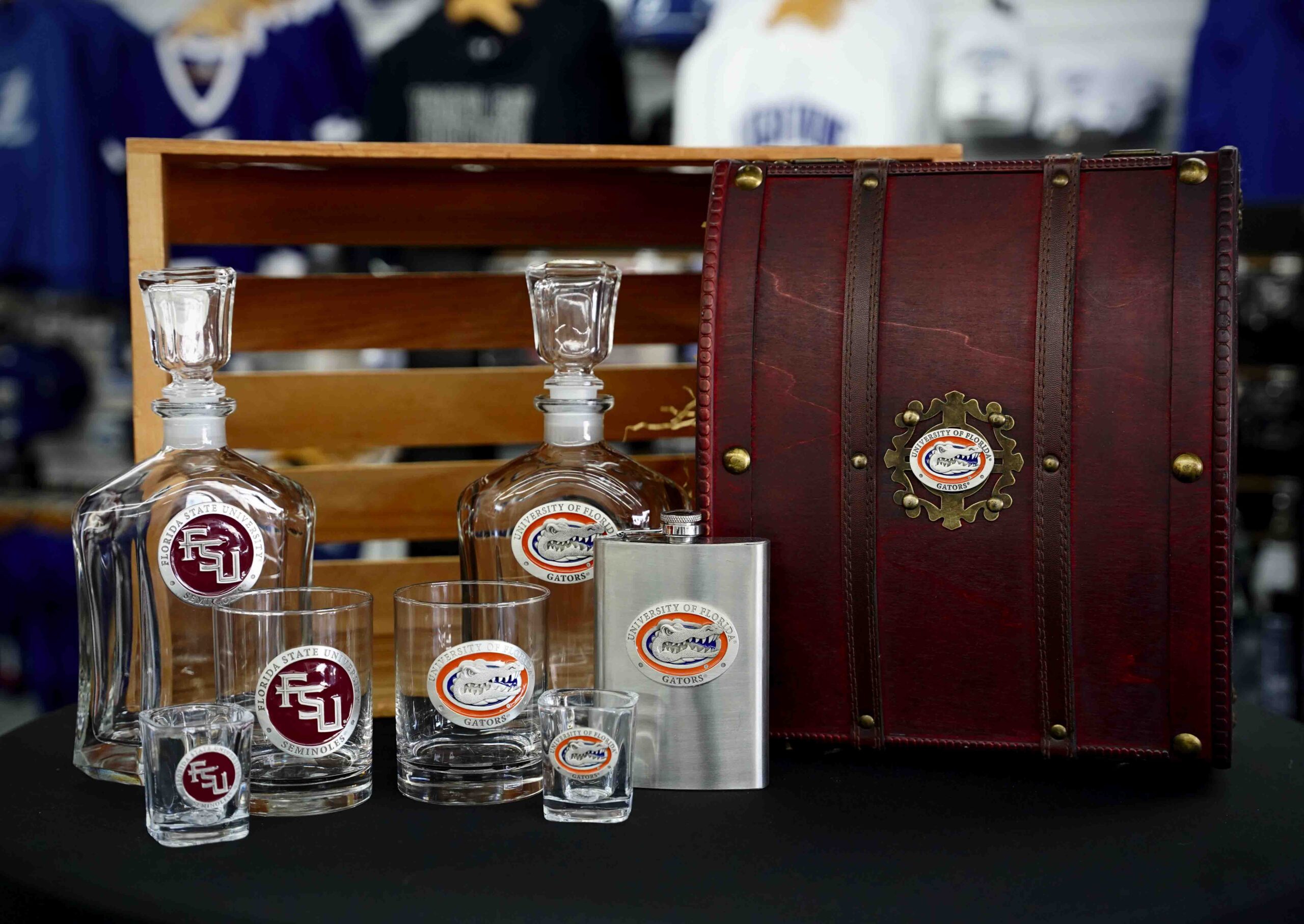 Get in the college football spirit with items from the Heritage Pewter Collection. Whether you’re a Gators fan or root for the Seminoles, show your team pride with the Capitol Decanter three-piece chest in select collegiate teams of Florida and Florida State for $240. Additional barware to expand your collection includes a 14-ounce pewter and enamel emblem double old-fashioned glass for $40, a 1.5-ounce pewter and enamel emblem square shot glass for $23 and an 8-ounce pewter and enamel emblem stainless steel flask for $60. All items are handmade in the United States and are officially licensed barware and gifts.
