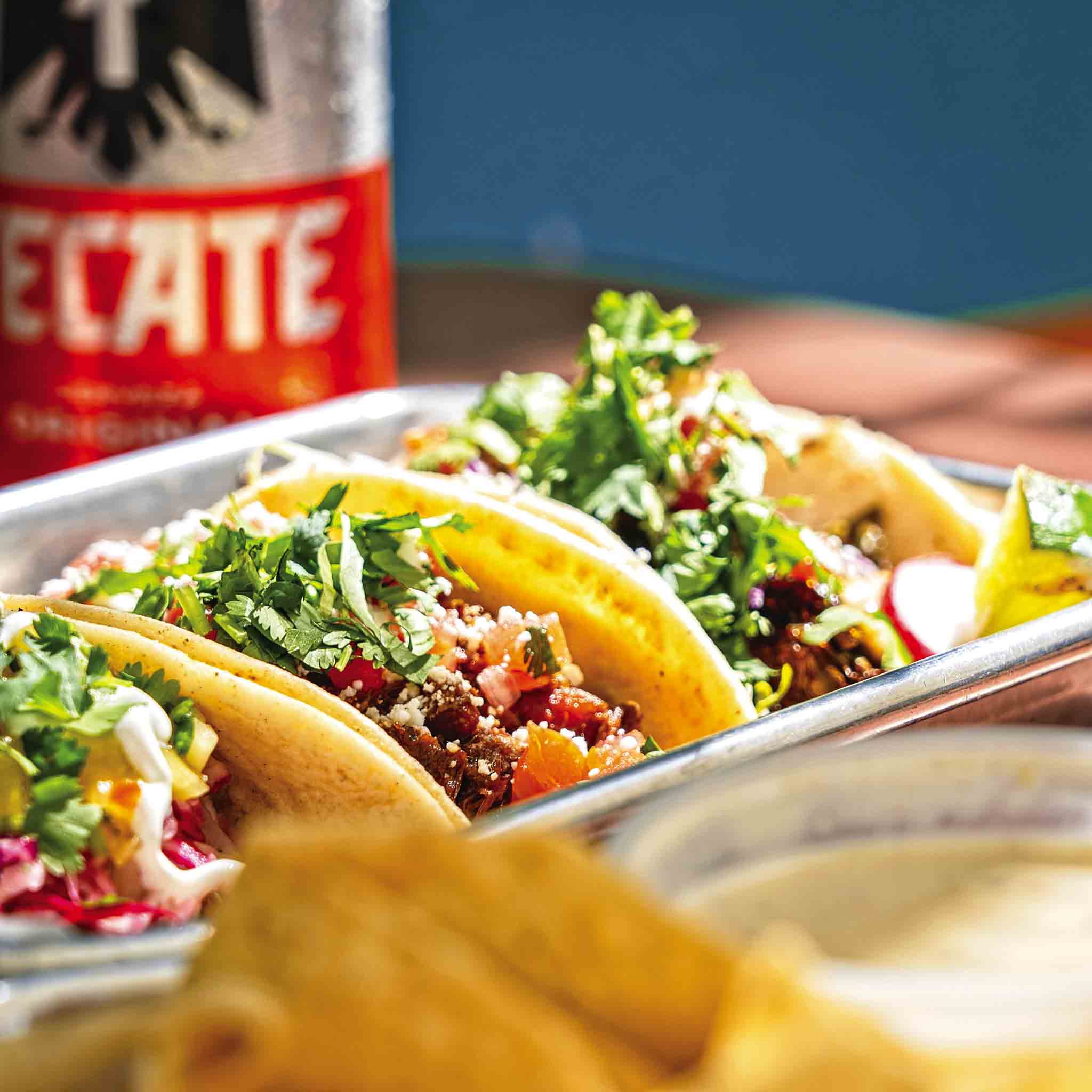 Mix and match a variety of tacos on housemade corn tortillas. Choose from pescado, carnitas, barbacoa, chorizo, carne asada, pollo tinga, pollo verde, camarones, or veggie-friendly options, all $4.25 or less.