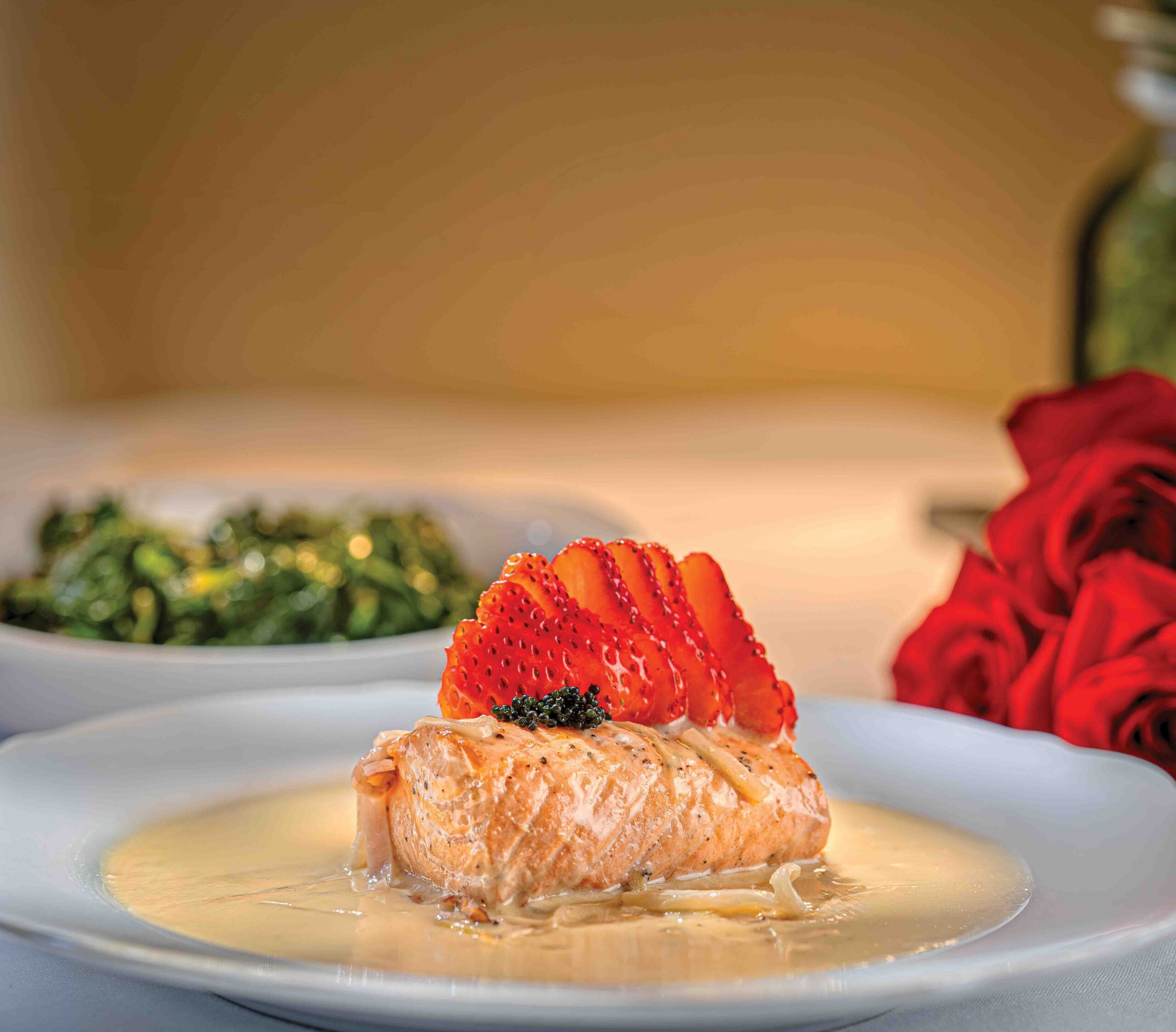 I call the Salmone Champagne at Chanta “the most romantic dish in Tampa Bay.” The presentation is stunning, with each ingredient thoughtfully displayed. It’s almost aphrodisiacal—berries and cream reimagined and not something you’d expect in a salmon dish.