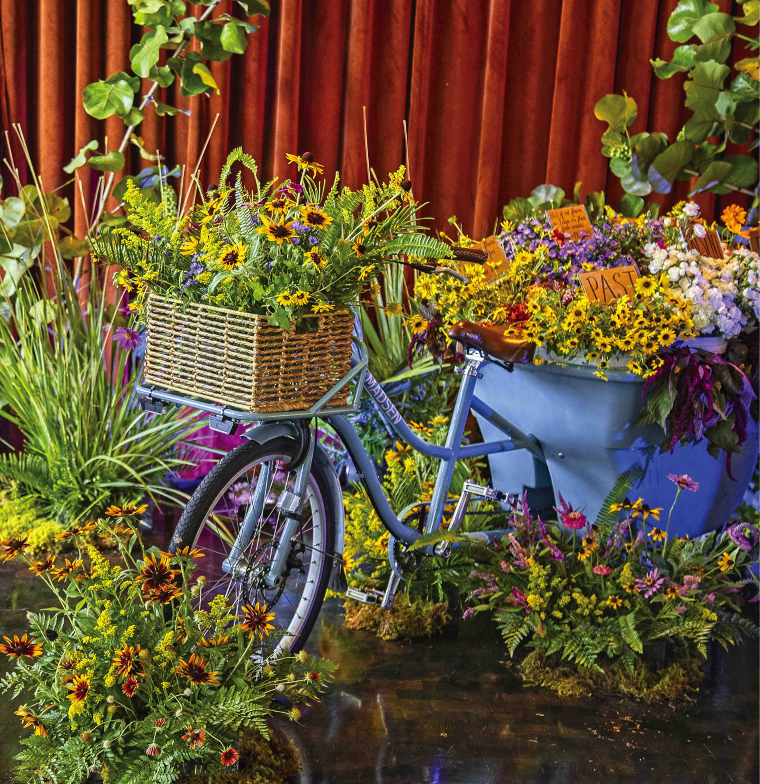 Her mobile floral installation, titled “Flower Bike,” is both performance and interactive art. Composed of blooms from her garden, Rabaut brings enough stems for her audience to create their own floral masterpiece.